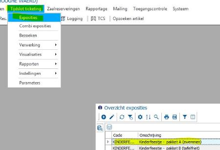 Tijdslot ticketing > Exposities > en doe dubbelklik op de