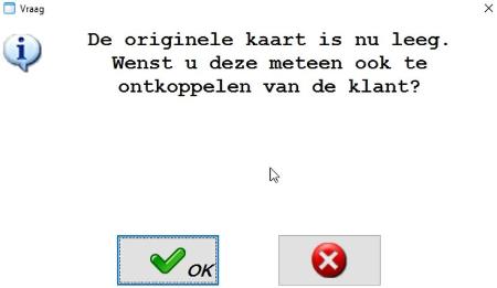 Zoek via individu het oude kaartnummer van de klant op Klik in de kassa op de functie toets Klik op de functie klantenkaart opzoeken Voer het eerder opgezochte kaartnummer in en klik op OK De kaart gegevens worden getoond. Klik linksonder op het rode ...